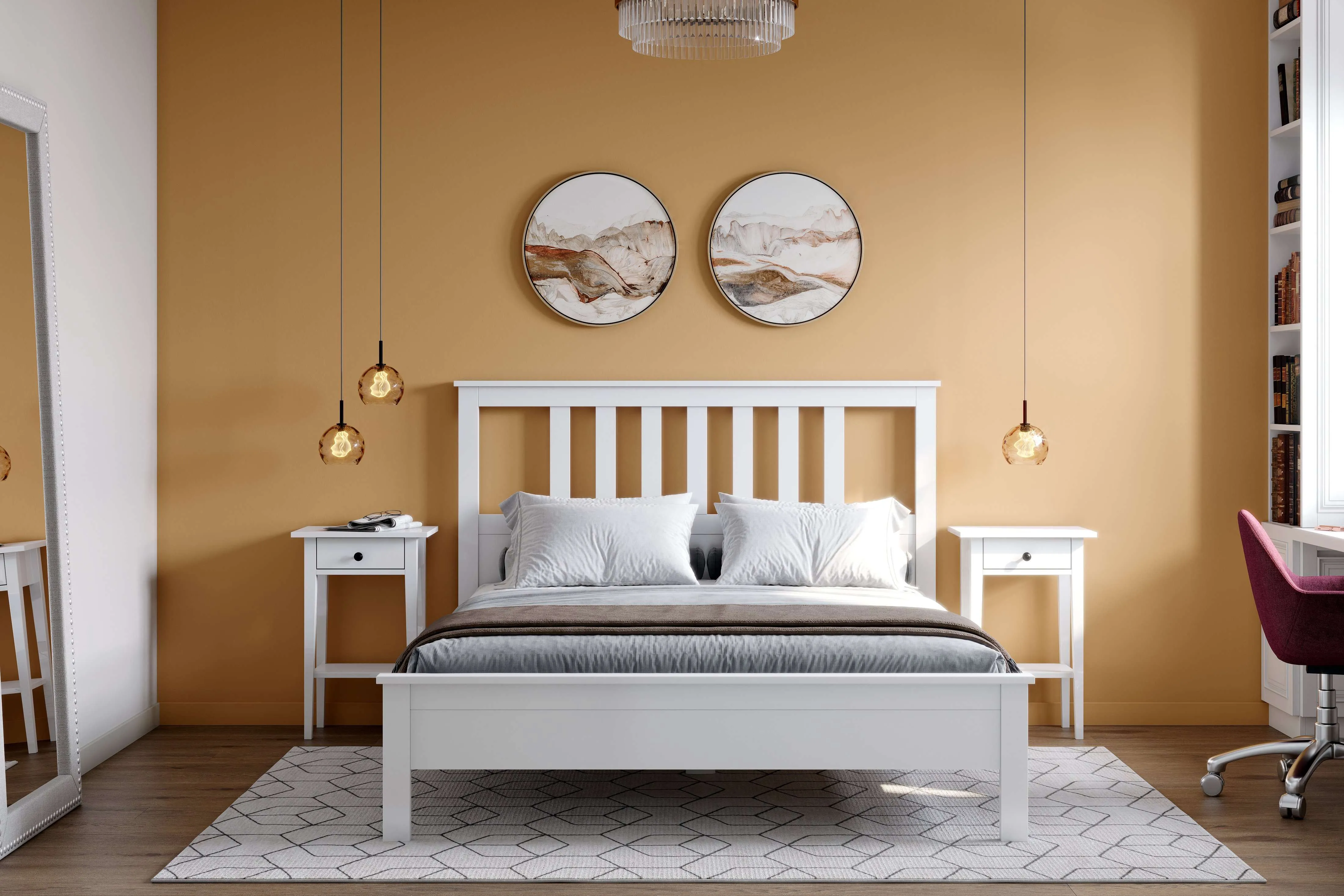 Кровать выполнена в скандинавском стиле. Она идеально подойдет как для спальни, так и для детской комнаты