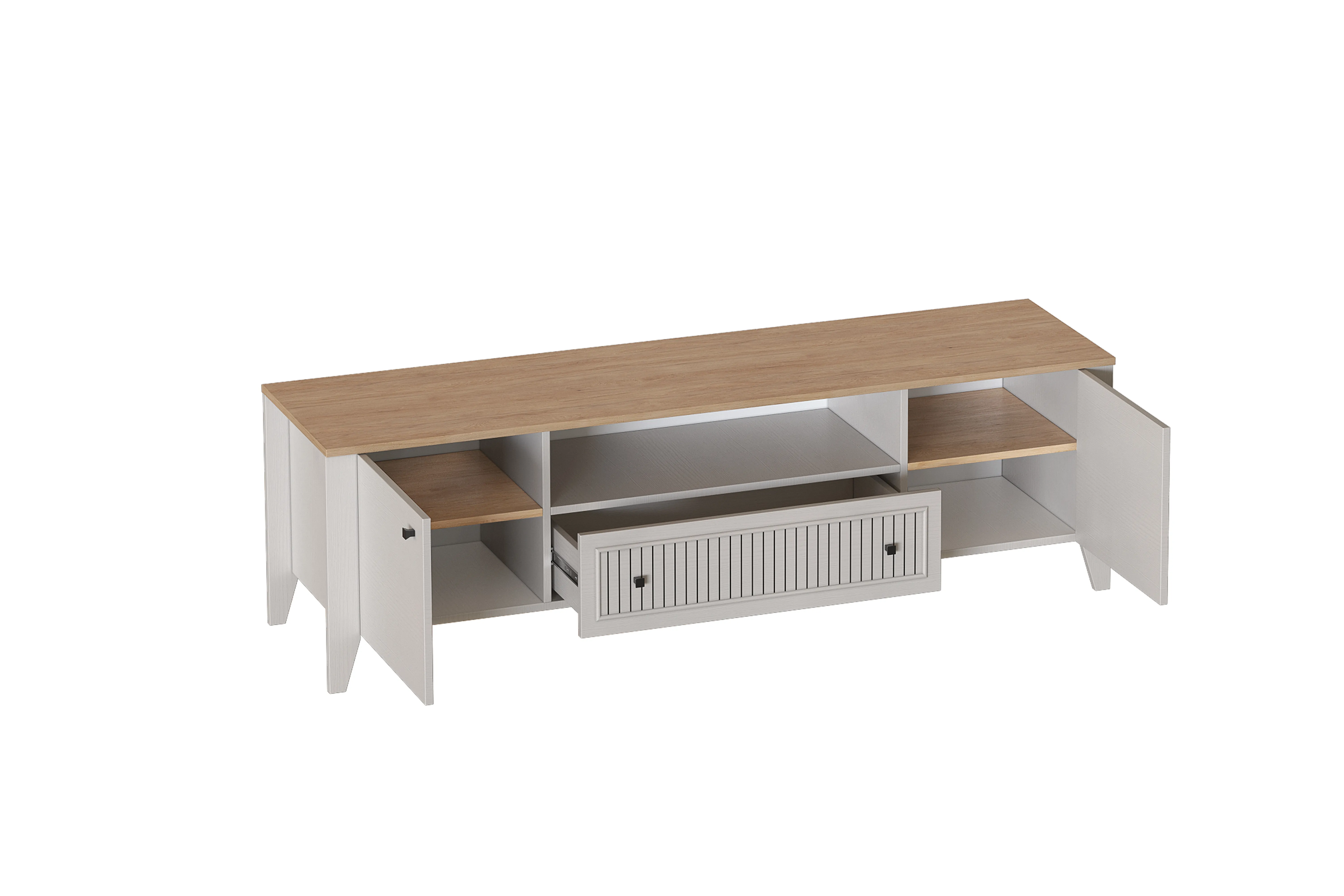 УФ-фотопечать полосок на фасадах в обрамлении пластиковых молдингов придает изделию оригинальный стиль современной классики.